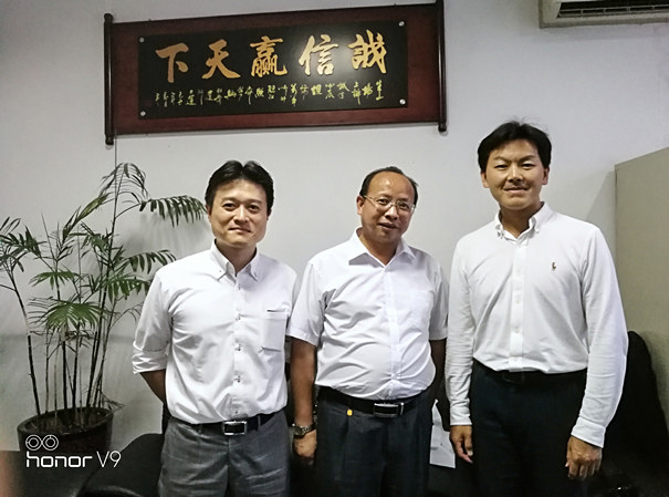 廣州艾若多自動化控制設備有限公司吳經理(中)跟日本美和鎖業(yè)株式會社杉田先生(左).石田先生(右)合影留念: